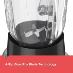 4-Tip QuadPro Blade Technology – The 4-tip stainless steel blending blade works with the shape of the jar to create a constant flow and vortex that leads ingredients directly to the blades for fast blending performance.