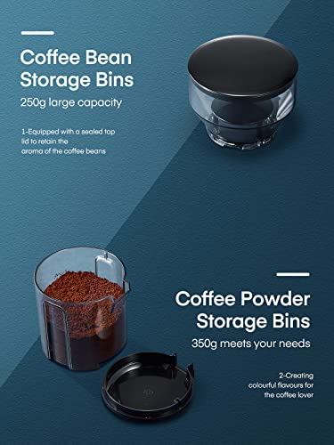 ☕ 【Over 18 Grind Settings】: The coffee grinder offers a variety of coffee grind sizes, from the finest grind to the coarsest grind for French press or cold brew coffee, to meet your needs for different coffee flavors!
