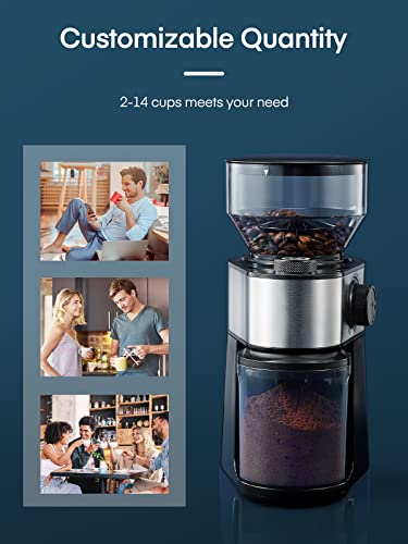 ☕ 【Grind on Demand (2 to 14 Cups)】: This electric burr coffee grinder has a large capacity and can make up to 14 cups of coffee grounds. Whether it is a single person, a family, or even an office, it can be easily handled.