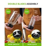 [2-1 Blender Combo]: Versatile design with a 22 oz travel cup and 52 oz glass jar attachments, making it great for individual and family use.